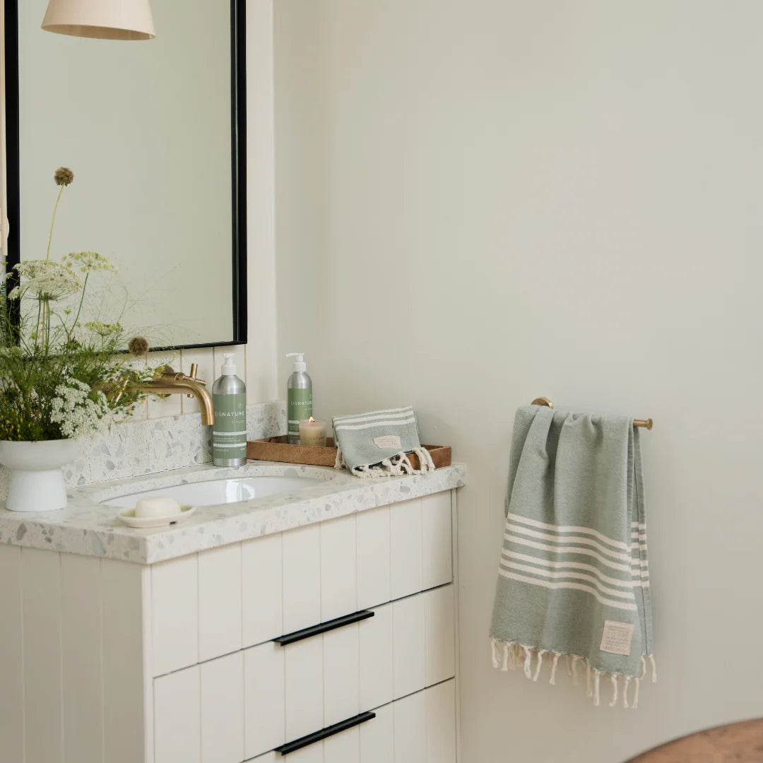 Handwoven Cotton Green Hand Towel + SigNATURE Scent Wash and Lotion Gift Box